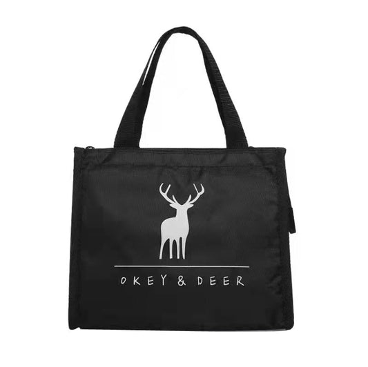 Horizontal Version Thick Waterproof Insulation Bag Oxford Cloth Lunch Bag Tote Bag(White Deer)