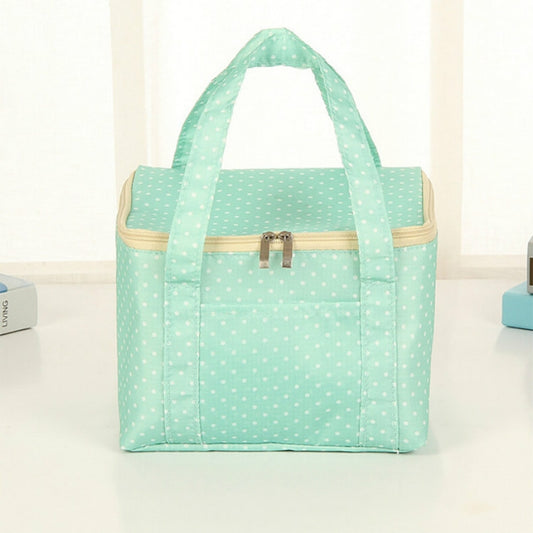 Large Oxford Cloth Insulation Bag Portable Lunch Bag Color Square Outdoor Picnic Bag(Green Dot)