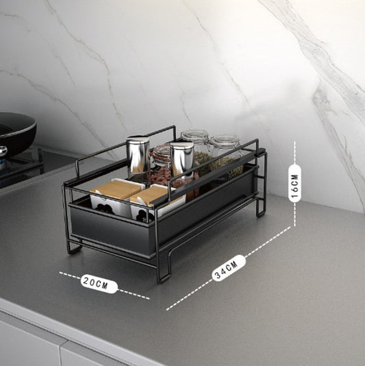 Kitchen Countertop Under Sink Spice Racks Can Be Stacked With Multi-Layer Pull-Out Storage Wrought Iron Rack(Black)