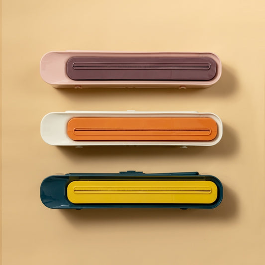 TM21006 3-In-1 Fresh Film Cutter Kitchen Garbage Bag Storage Racks Plastic Wrap Storage Rack(Orange)