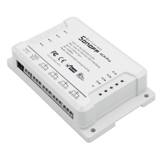 Télécommande Sonoff 4CH Pro 433 MHz + interrupteur de minuterie intelligent WiFi, verrouillage / verrouillage automatique, 3 modes de fonctionnement, compatible avec Alexa et Google Home, prise en charge iOS et Android