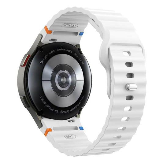 For Samsung Galaxy Watch 7 40mm / 44mm Wavy Grain Stitched Reverse Buckle 20mm Silicone Watch Band(Official White)