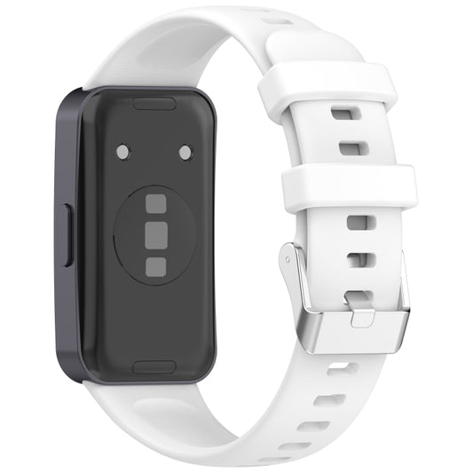 For Huawei Band 10 / 9 / 8 Silver Steel Buckle Soft Silicone Watch Band(White)