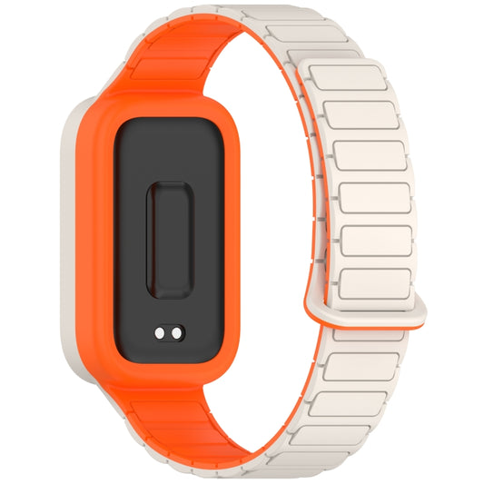 For Xiaomi Band 9 Active Dual Color Soft Case Integrated Magnetic Silicone Watch Band(Starlight Orange)