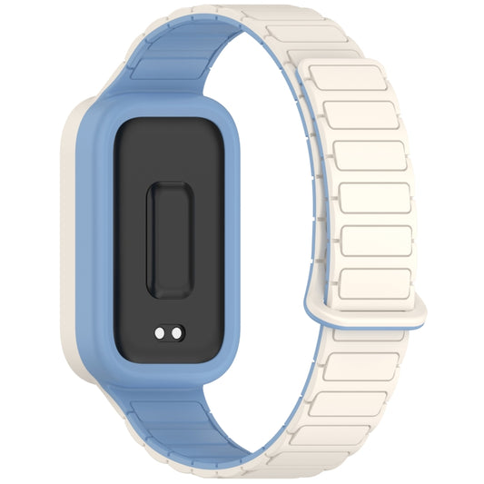 For Xiaomi Band 9 Active Dual Color Soft Case Integrated Magnetic Silicone Watch Band(White Blue)
