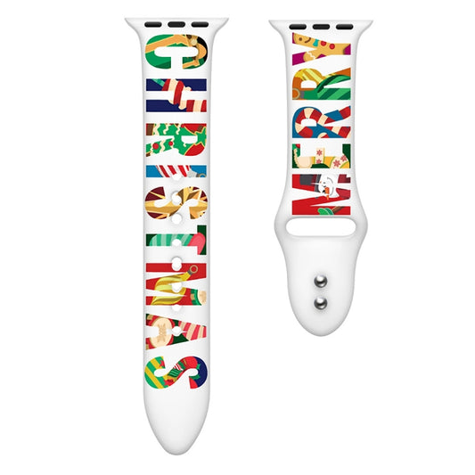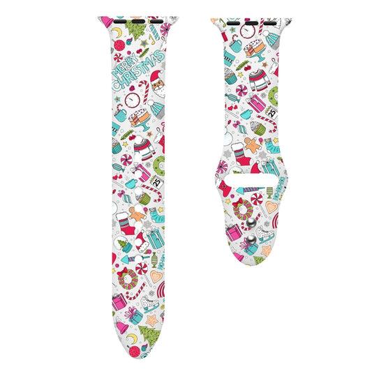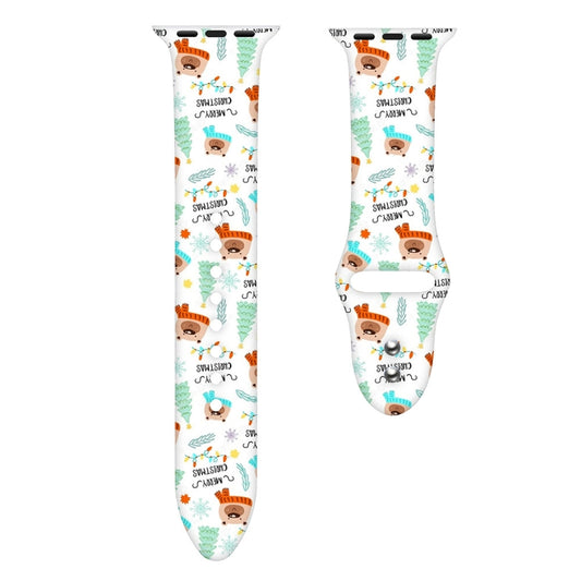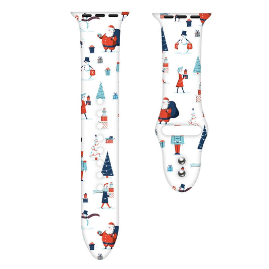 For Apple Watch 42mm / 41mm / 40mm / 38mm Christmas Pattern Silicone Watch Band(Santa Claus White)