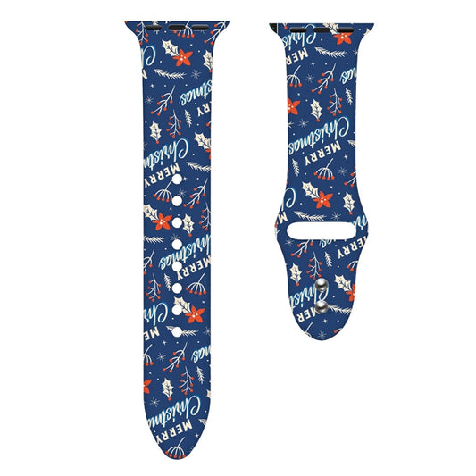 For Apple Watch 42mm / 41mm / 40mm / 38mm Christmas Pattern Silicone Watch Band(Sakura Red)