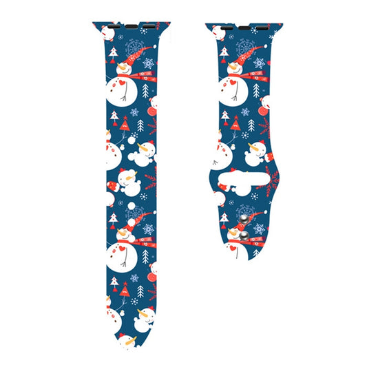 For Apple Watch 42mm / 41mm / 40mm / 38mm Christmas Pattern Silicone Watch Band(Snowman Blue)
