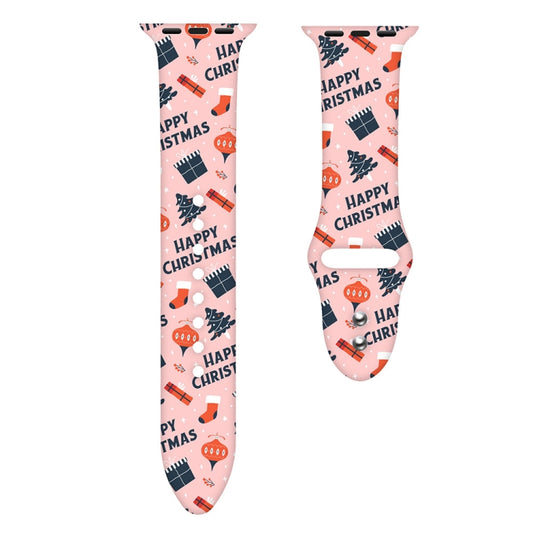 For Apple Watch 42mm / 41mm / 40mm / 38mm Christmas Pattern Silicone Watch Band(Pink Christmas)