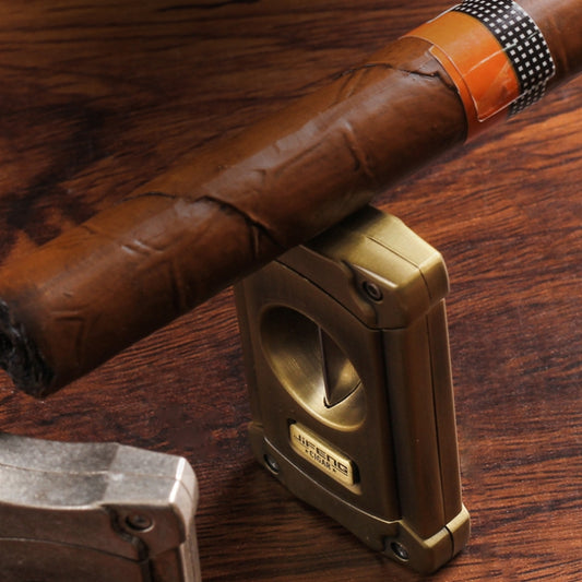 JIFENG 3 In 1 V Cigar Scissors Cigar Holder Cigar Cutter With Cigar Puncher(Bronze Wire Drawing)