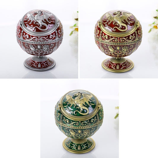 Metal Globe Ashtray With Lid Holiday Gift Tea Table Decoration(Dragon Ancient Tin Wine Red)