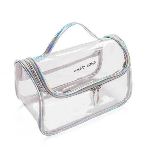 Trousse de toilette transparente et étanche de voyage, multifonction, anti-rides et sans odeur, sac de rangement pour le lavage, couleur : gris argenté, style : carré