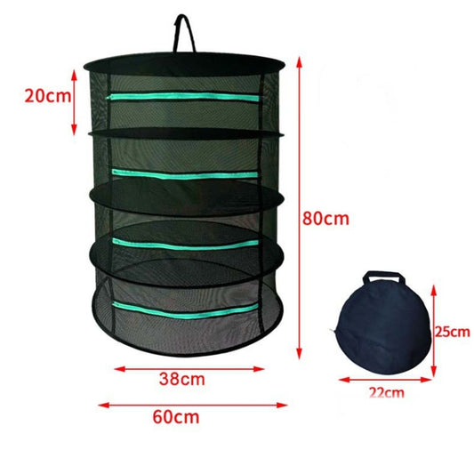 Filet de séchage à herbes suspendu, support de séchage pliable, fermeture éclair fermée, filet de séchage pour plantes, spécification : 60 cm de diamètre, 4 couches
