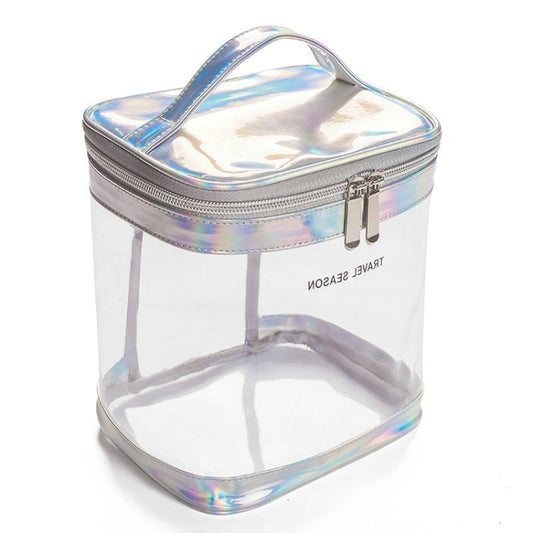 Trousse de toilette transparente et étanche de voyage, multifonction, anti-rides et sans odeur, sac de rangement pour le lavage, couleur : gris argenté, style : cylindrique
