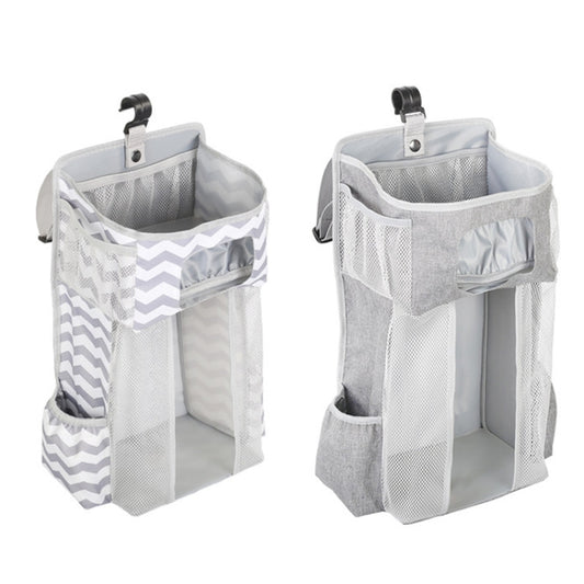 Baby Crib Hanging Bag Multifunctional Detachable Bed Diaper Toy Storage Bag(Gray Stripe)