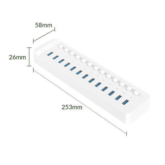 ORICO CT2U3-13AB Plastic Stripes 13 Ports USB 3.0 HUB with Individual Switches, Plug:AU Plug(White)