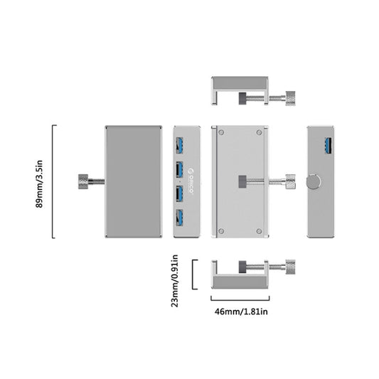 ORICO MH4PU HUB USB 3.0 à 4 ports en alliage d'aluminium avec câble USB de 1 m, largeur du clip : 10-32 mm