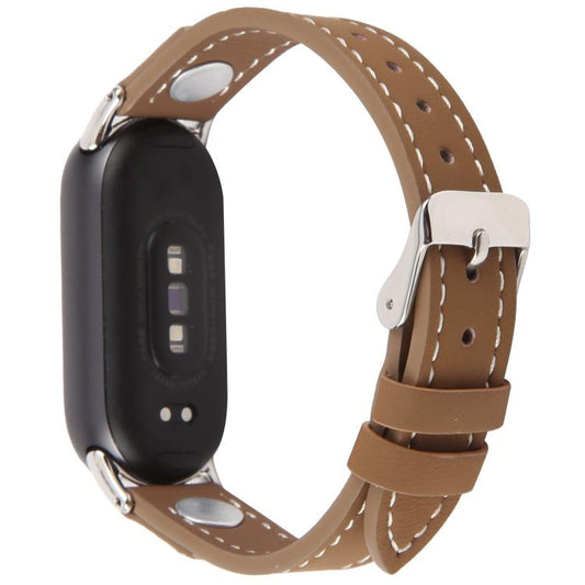 For Xiaomi Smart Band 10 / 9 / 8 Rivet Camellia Skin Feel Microfiber Leather Watch Band(Dark Brown)