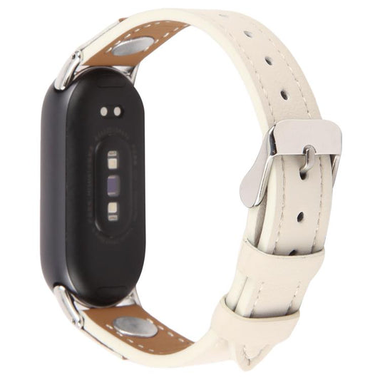 For Xiaomi Smart Band 10 / 9 / 8 Rivet Camellia Skin Feel Microfiber Leather Watch Band(White)