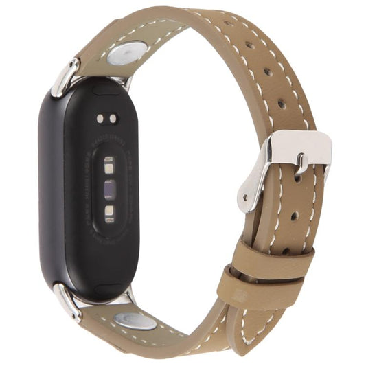 For Xiaomi Smart Band 10 / 9 / 8 Rivet Camellia Skin Feel Microfiber Leather Watch Band(Taupe)