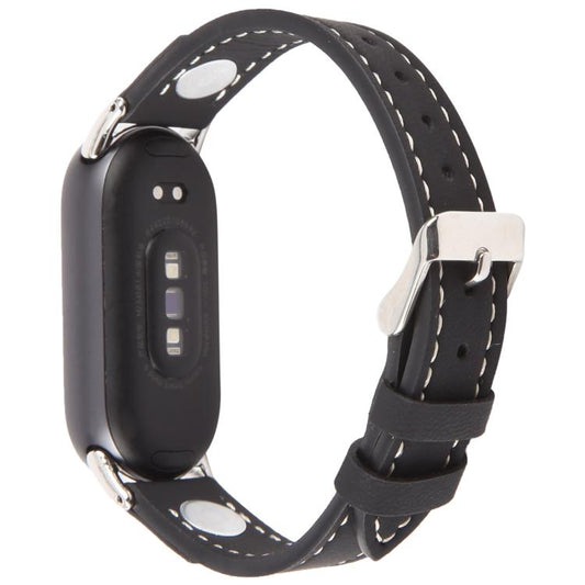 For Xiaomi Smart Band 10 / 9 / 8 Rivet Camellia Skin Feel Microfiber Leather Watch Band(Black)