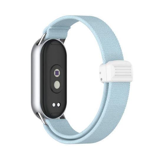 For Xiaomi Smart Band 10 / 9 / 8 Metal Head Magnetic Plastic Buckle Elastic Nylon Watch Band(Light Blue)