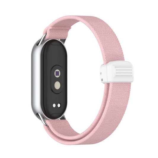 For Xiaomi Smart Band 10 / 9 / 8 Metal Head Magnetic Plastic Buckle Elastic Nylon Watch Band(Pearl Pink)