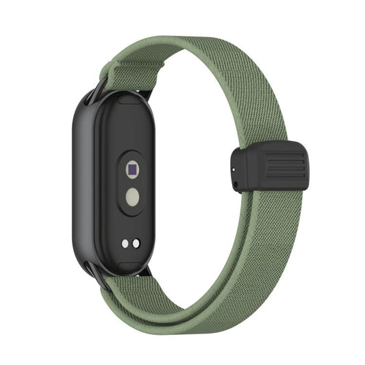 For Xiaomi Smart Band 10 / 9 / 8 Metal Head Magnetic Plastic Buckle Elastic Nylon Watch Band(Dark Green)