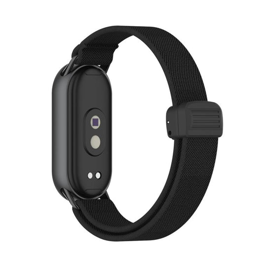 For Xiaomi Smart Band 10 / 9 / 8 Metal Head Magnetic Plastic Buckle Elastic Nylon Watch Band(Black)