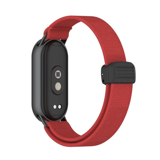 For Xiaomi Smart Band 10 / 9 / 8 Metal Head Magnetic Plastic Buckle Elastic Nylon Watch Band(Red)