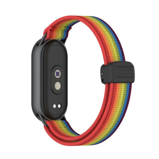For Xiaomi Smart Band 10 / 9 / 8 Metal Head Magnetic Plastic Buckle Elastic Nylon Watch Band(Rainbow)