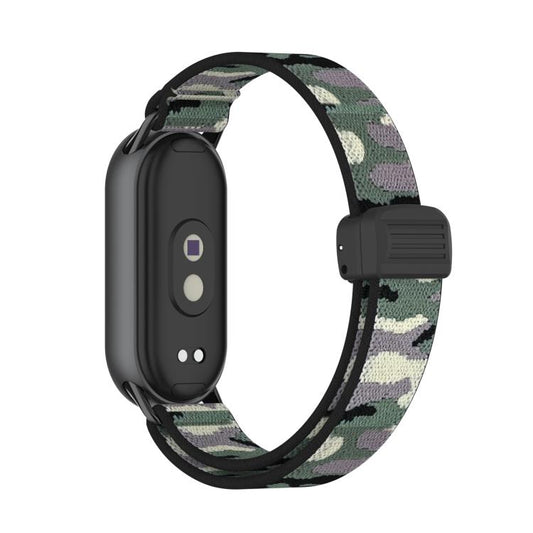 For Xiaomi Smart Band 10 / 9 / 8 Metal Head Magnetic Plastic Buckle Elastic Nylon Watch Band(Camouflage Jungle)