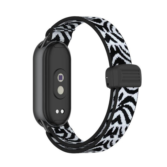For Xiaomi Smart Band 10 / 9 / 8 Metal Head Magnetic Plastic Buckle Elastic Nylon Watch Band(Snow Leopard)