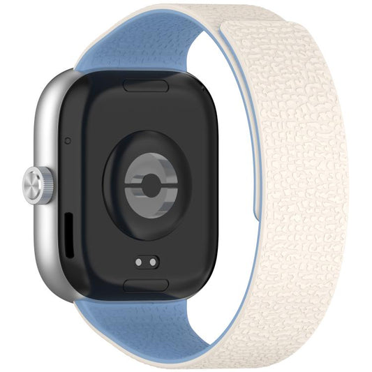 For Xiaomi Smart Band 9 Pro / Redmi Watch 5 Metal Plug Lychee Texture Soft Magnetic Silicone Watch Band(Starlight)