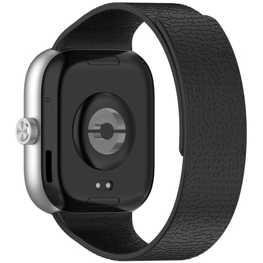 For Xiaomi Smart Band 9 Pro / Redmi Watch 5 Metal Plug Lychee Texture Soft Magnetic Silicone Watch Band(Black)