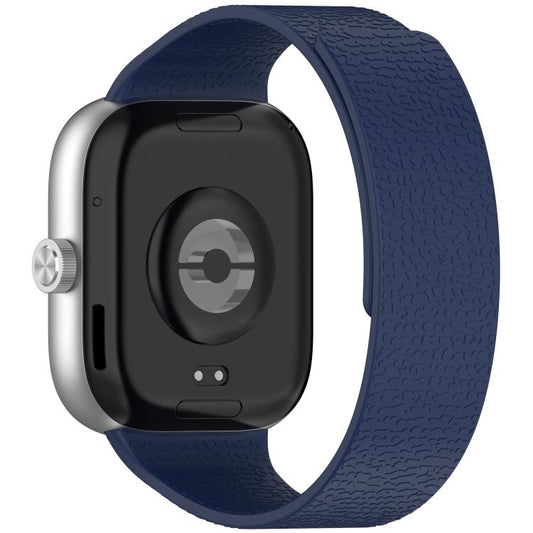For Xiaomi Smart Band 9 Pro / Redmi Watch 5 Metal Plug Lychee Texture Soft Magnetic Silicone Watch Band(Midnight Blue)