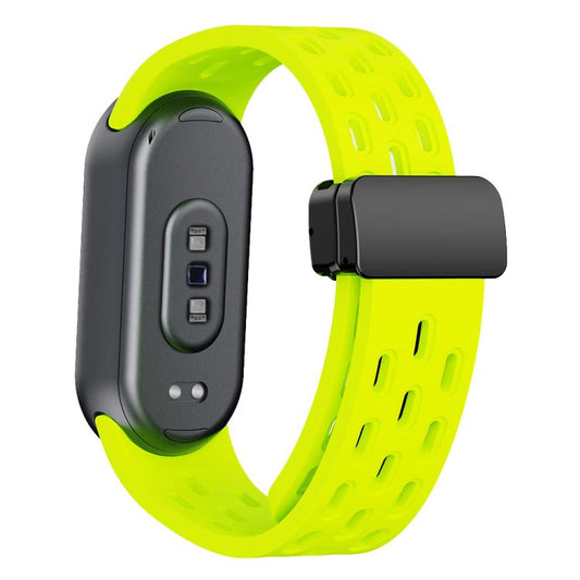 For Xiaomi Smart Band 10 / 9 / 8 xDfind Holes Magnetic Black Buckle Silicone Watch Band(Lime Green)