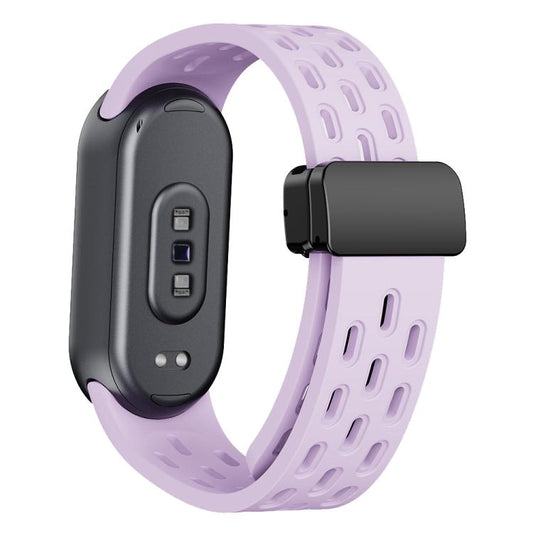 For Xiaomi Smart Band 10 / 9 / 8 xDfind Holes Magnetic Black Buckle Silicone Watch Band(Light Purple)