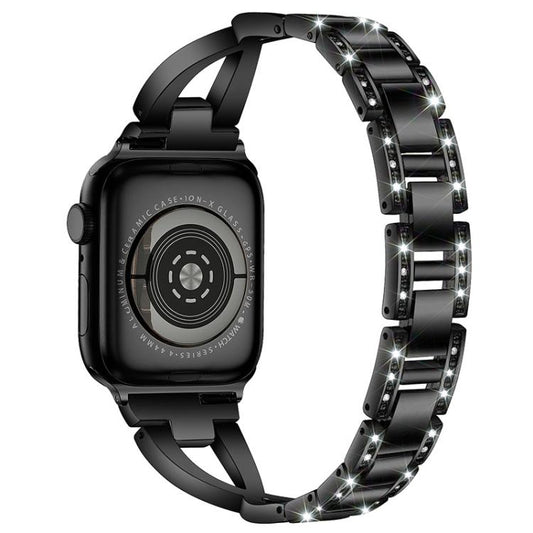 For Apple Watch 42 / 44 / 45 / 46 / 49mm xDfind X-Shaped Single Row Diamond Metal Watch Band(Black)