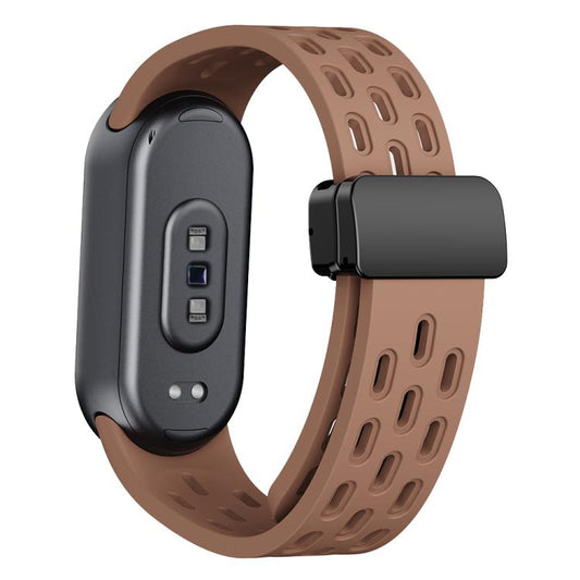 For Xiaomi Smart Band 10 / 9 / 8 xDfind Holes Magnetic Black Buckle Silicone Watch Band(Brown)