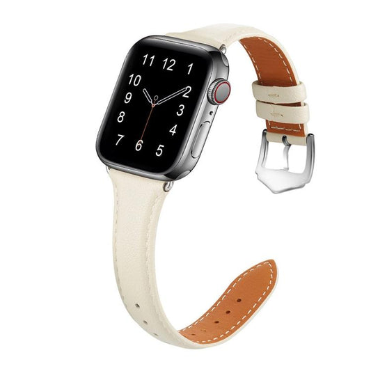 For Apple Watch 42mm / 41mm / 40mm / 38mm Small Waist Drop Buckle Genuine Leather Watch Band(Ivory White)