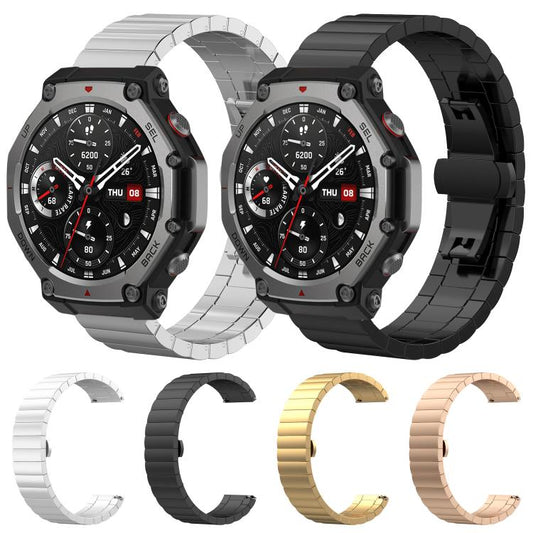 For Amazfit T-Rex 3 22mm xDfind One-bead Bamboo Solid Stainless Steel Watch Band(Gold)