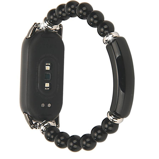 For Xiaomi Smart Band 10 / 9 / 8 Large Beaded Bracelet Watch Band(Black Agate Beads)