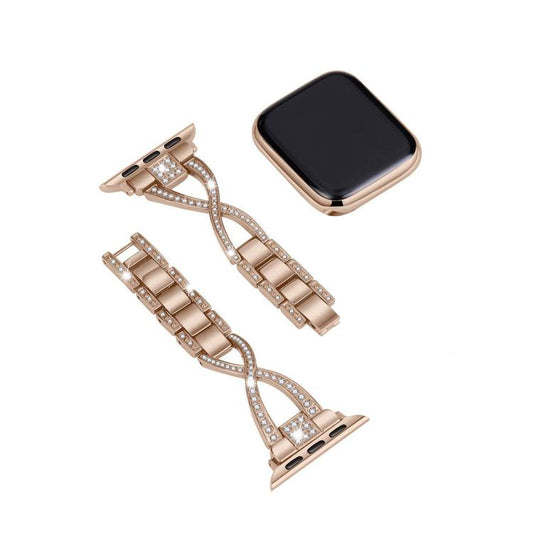 For Apple Watch 42mm / 41mm / 40mm / 38mm Crossed Diamond Zinc Alloy Watch Band(Rose Gold)