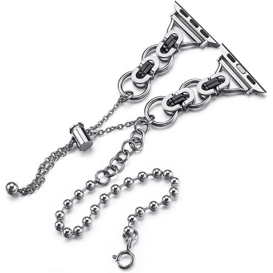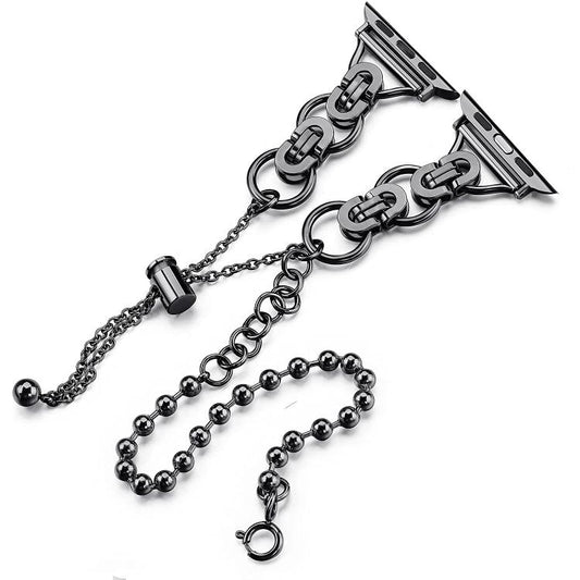 For Apple Watch 42mm / 41mm / 40mm / 38mm Double Circle Beaded Chain Zinc Alloy Watch Band(Between Black)
