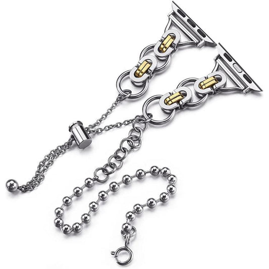 For Apple Watch 42mm / 41mm / 40mm / 38mm Double Circle Beaded Chain Zinc Alloy Watch Band(Between Gold)