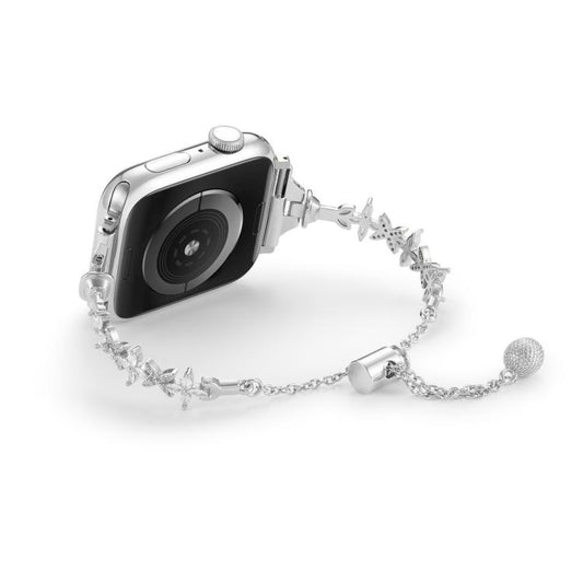 For Apple Watch 46mm / 49mm / 45mm / 44mm Four Leaf Clover Diamond Zinc Alloy Watch Band(Silver)