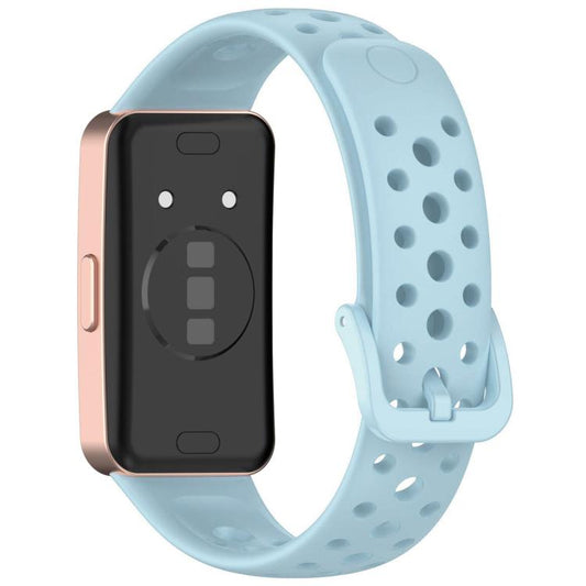 For Huawei Band 10 / 9 / 8 xDfind Hole Style Breathable Silicone Watch Band(Chrysanthemum Blue)