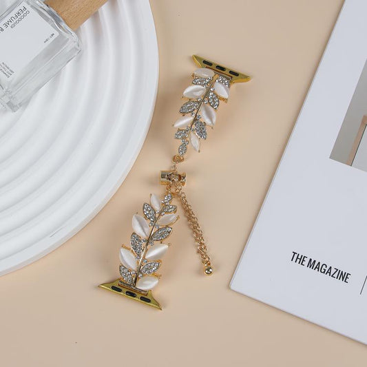 For Apple Watch 42mm / 41mm / 40mm / 38mm Leaf Shaped Diamond Studded Bracelet Alloy Watch Band(Gold White)