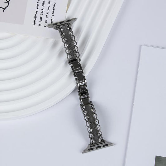 For Apple Watch 42mm / 41mm / 40mm / 38mm Lace Edged Diamond Alloy Metal Watch Band(Black)